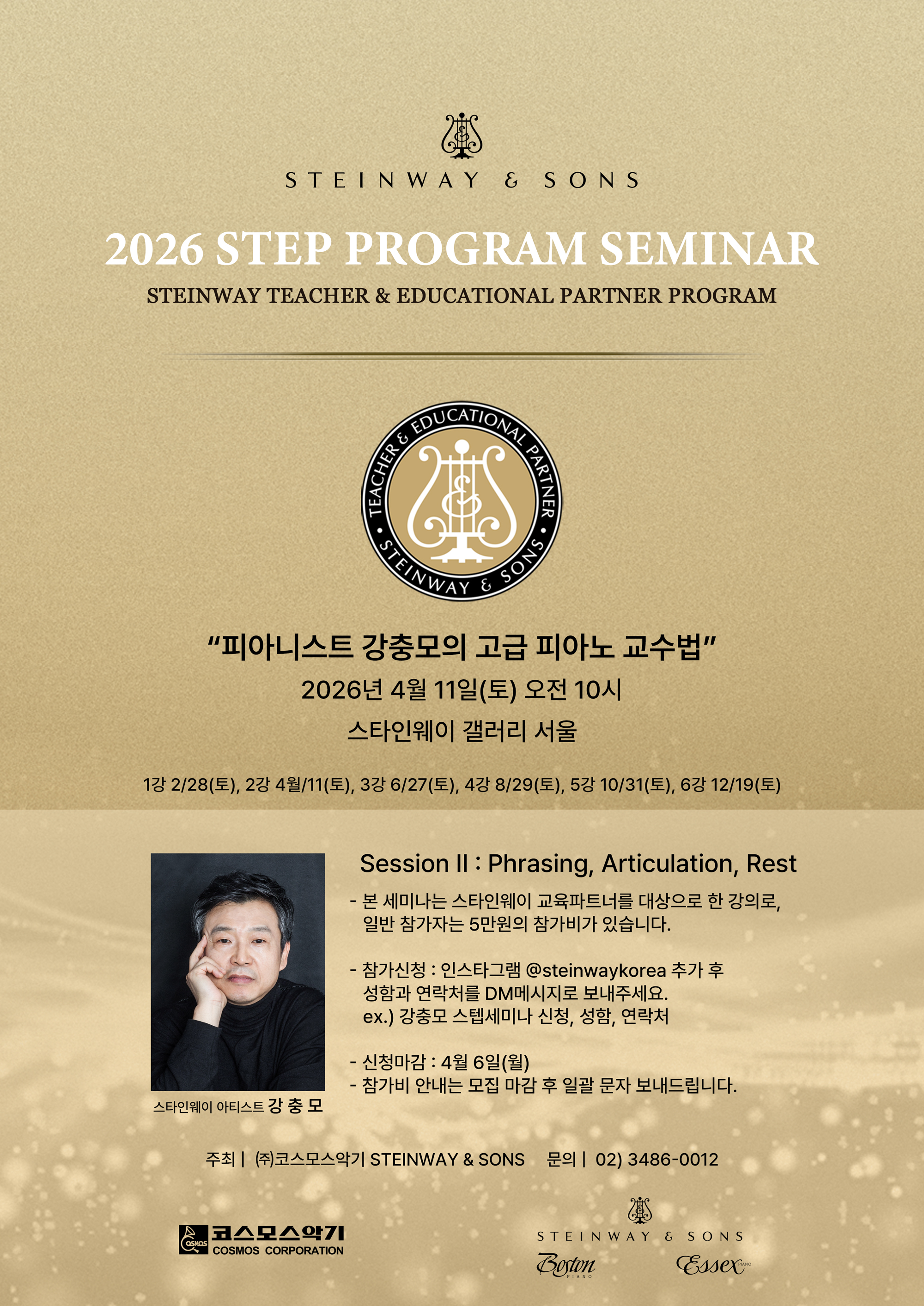- 본 세미나는 스타인웨이 교육파트너를 대상으로 한 강의로, 일반 참가자는 5만원의 참가비가 있습니다.
